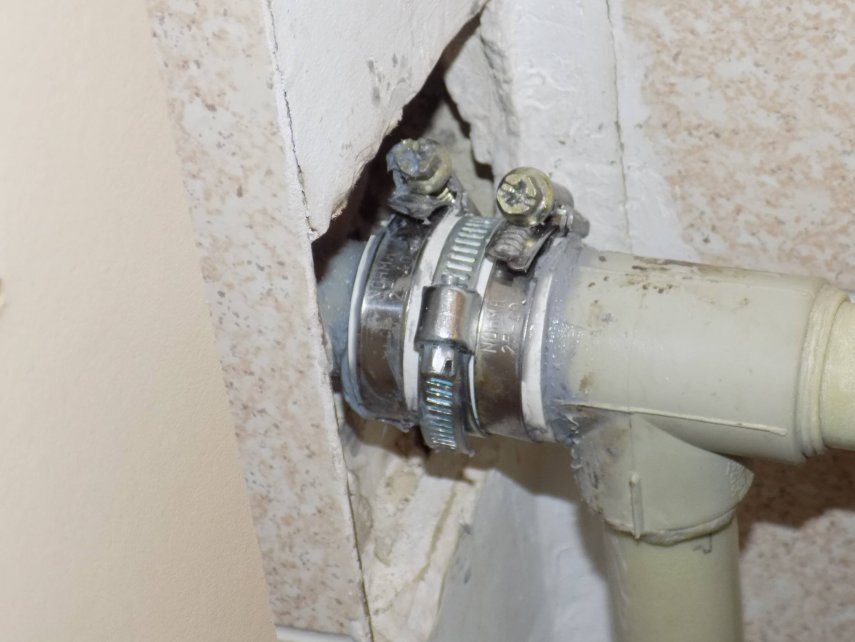 В итоге вы получаете достаточно плотный контакт резиновой прокладки с поверхностью трубы, и течь устраняется. Данный способ хорош своей эффективностью, но выглядит совершенно непрезентабельно. Поэтому монтаж резиновых заплаток лучше всего практиковать, как временный вариант решения проблемы.