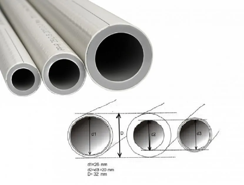 - Расчёт диаметра полипропиленовых труб для отопления делается с учетом того, что производители указывают наружные габаритные размеры. Для вычисления полезного сечения необходимо отнять две толщины стенки;