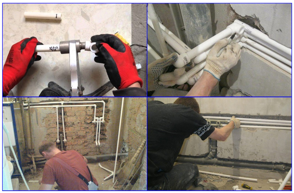 - Все операции по пайке полипропилена стараются проводить на поверхности. После сборки длинных участков их помещают в штробу и спаивают с другими фрагментами.