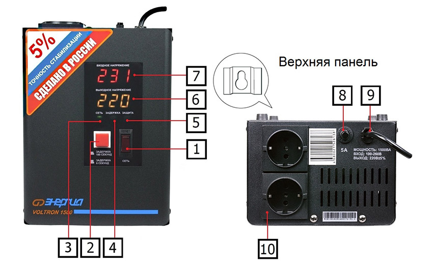 Другой вариант — приобретение стабилизатора, который подключается непосредственно перед конкретным потребителем. Например, можно купить Optivolt H-S2000, работающий с входным напряжением 170-260 В с точностью стабилизации в 5%. Дешевле — Энергия Voltron 1500 (входное напряжение 105-265 В, выходное — 209-231 В, мощность 1500 В·А). Потратить на покупку такого устройства придется 4000-5000 рублей и это приобретение будет вполне оправданным.