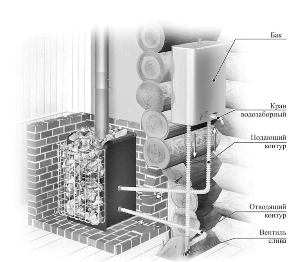 Он располагается в основании дымохода или в топливном помещении, а вода внутри него нагревается от печного тепла. Затем по трубам вода поступает в радиатор, равномерно прогревая здание дома. Такая система обладает несколькими неоспоримыми преимуществами: