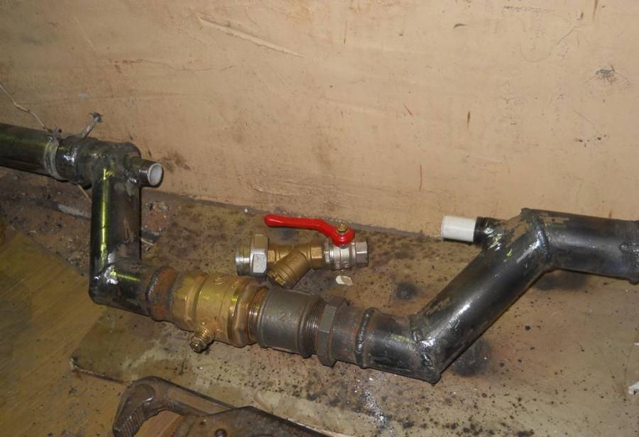 Важно не забыть врезать также запорные краны. Также нужно быть внимательным к сторонам трубы – лучше их не путать