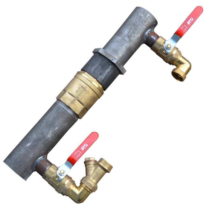 Соблюдение размеров труб и патрубков обеспечит нормальную работу системы, согласно всем законам гидравлики. Что же касается монтажа, то его особенности напрямую зависят от типа используемого материала. Если речь идет о металлическом трубопроводе, то достаточно просто варить перемычку и установить краны.