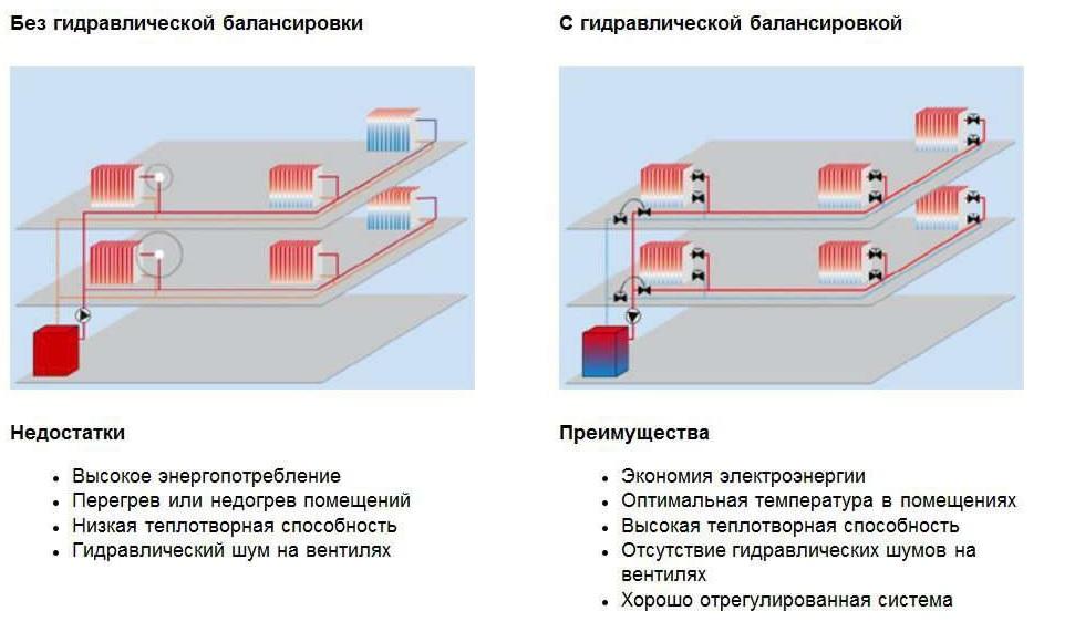 Балансировка проводится при полностью (на максимум) открытых термоголовках. Для проверки температуры обратки используется контактный термодатчик, например, в мультиметре.