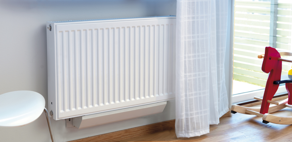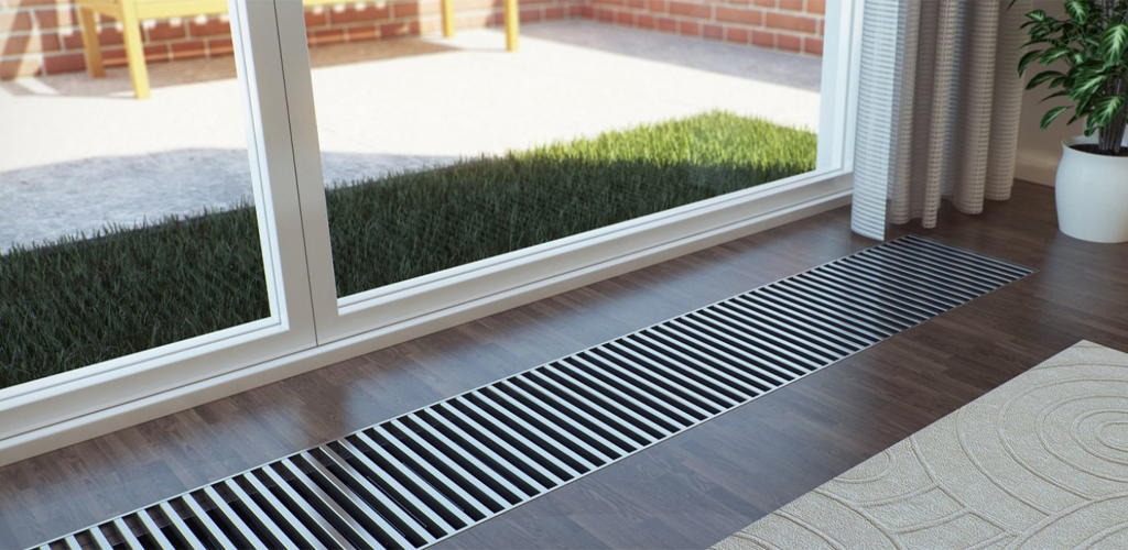 Еще один тип отопительных аппаратов, которые содержат теплообменник из меди и алюминия. Тепло передается через естественную конвекцию или с помощью бесшумного вентилятора. Эти отопительные приборы дают возможность прервать холодный поток от окон или остекленных фасадов. Прибор идеально вписывается в уникальные дизайнерские решения. Он встраивается в пол, и только верхняя часть остается видимой в виде декоративной продольной или рулонной решетки. Его можно встроить даже в подоконник, они подбираются идеально под площадь поверхности. Можно даже выбирать цвет напольной решетки. Стоят такие приборы в 5 раз больше настенных батарей.