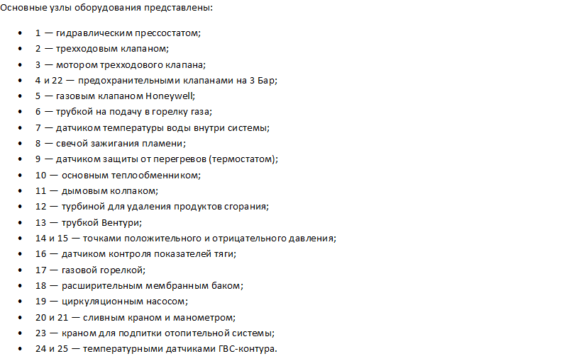 Современные двухконтурные газовые котлы отличаются сложностью конструкции. Они представляют собой готовые к эксплуатации приборы, уже готовые к встраиванию в отопительные системы. Обычно в них присутствуют: