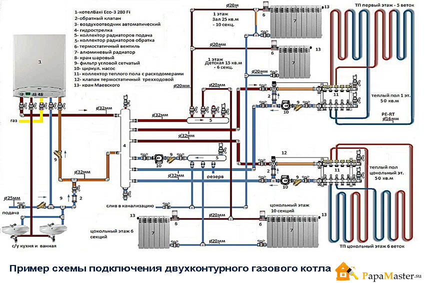 Соответственно, и схема подключения имеется в зависимости от выбранного пользователем типа отопления.