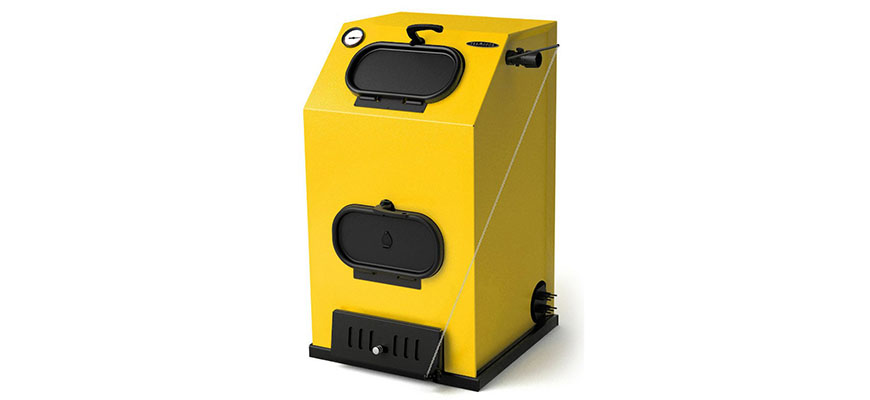 Литовский котлоагрегат, с более мощной установкой 20.0 кВт, аналог Стропувы, с более совершенными характеристиками и поэтому дорогой комплектацией агрегата. Он имеет самую объемную топку — 320 л, а КПД, практически равным газовому котлу — до 91%. Чугунный теплообменный аппарат обеспечивает срок эксплуатации до 25 лет.