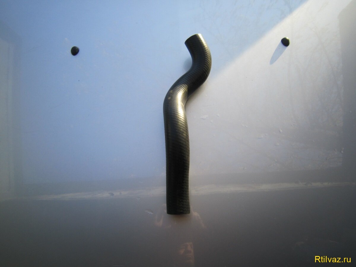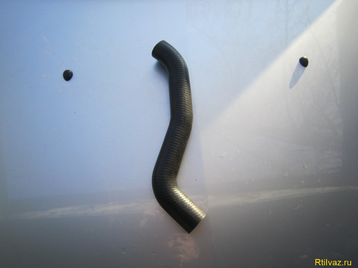 Далее идёт подводящий верхний патрубок радиатора, соединяющий радиатор с головкой блока двигателя.