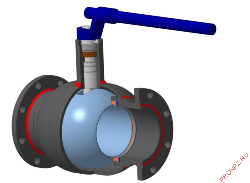 Полно проходные краны в своем устройстве имеют шар с отверстием, равным диаметру трубы. Во время прохождения жидкости в шаровых кранах в полностью открытом состоянии потери со стороны гидравлики сводятся к минимуму. Это качество обеспечило применение арматуры данного типа в качестве основного запорного устройства.