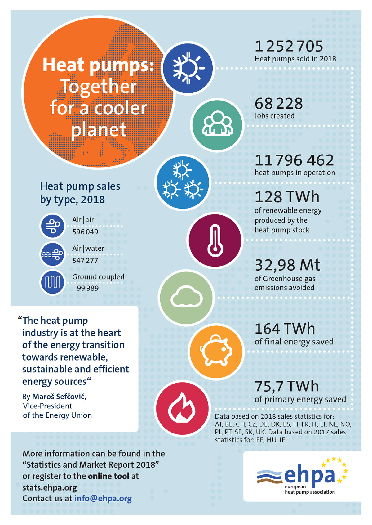 Обратите внимание, что воздушные тепловые насосы составляют более 90% от всего объёма тепловых насосов проданных в 2018 году!