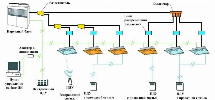 Слаженное функционирование системы происходит путем объединения чиллера с одним или несколькими фанкойлами посредством трубопроводов с теплоизоляцией. В случае отсутствия последней значительно падает значение КПД системы.