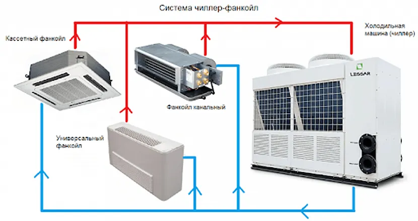 Система чиллер-фанкойл. Схема, ограничения, область применения.