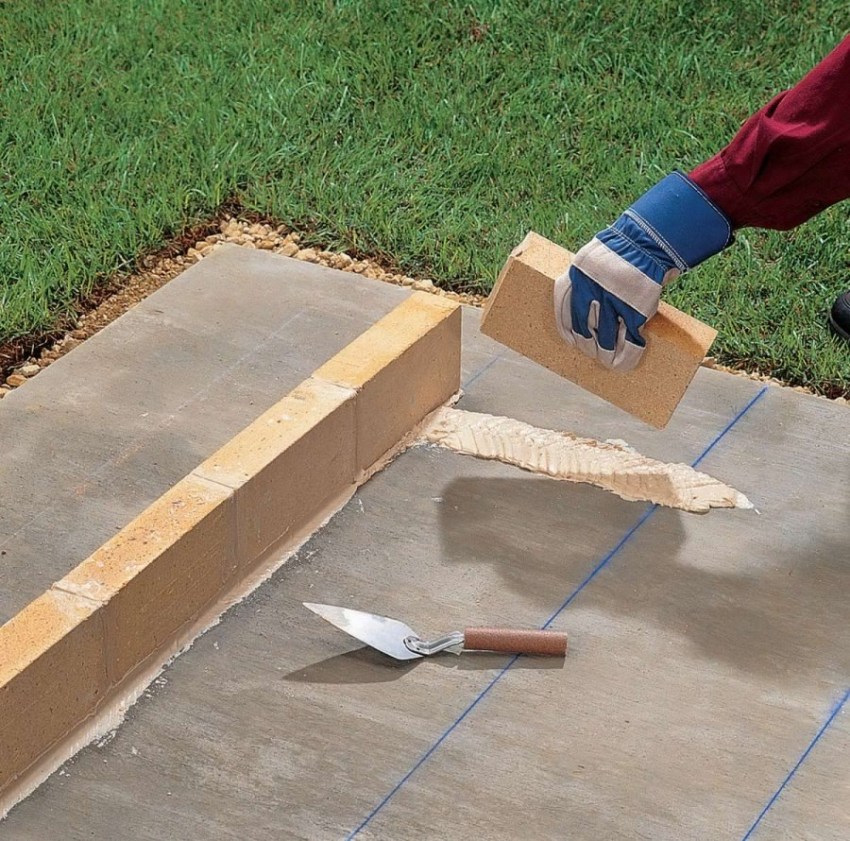 Если планируется большой барбекю комплекс из кирпича с площадкой для отдыха, лучше сразу организовывать трамбованную площадку с отдельным фундаментом под печь, выполняя ограждение площадки бордюрными камнями. Это позволит удержать насыпь расползания. Хорошо также заранее предусмотреть места для установки опор перголы или навеса.