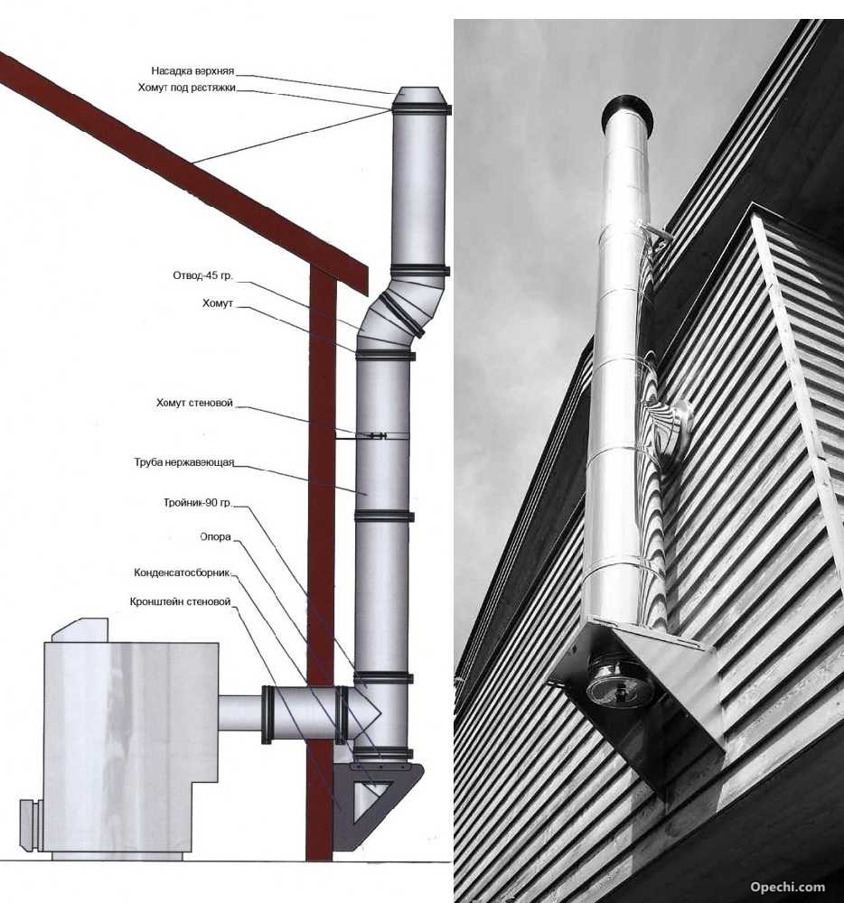 Вывод дымохода через стену