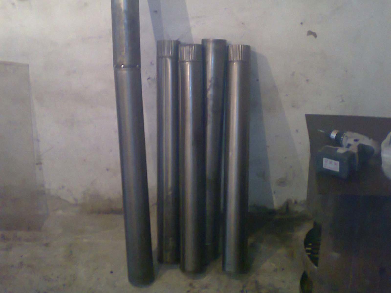 - Изготовить дымоход из трубы. Диаметр трубы подобрать не меньше расчетного.