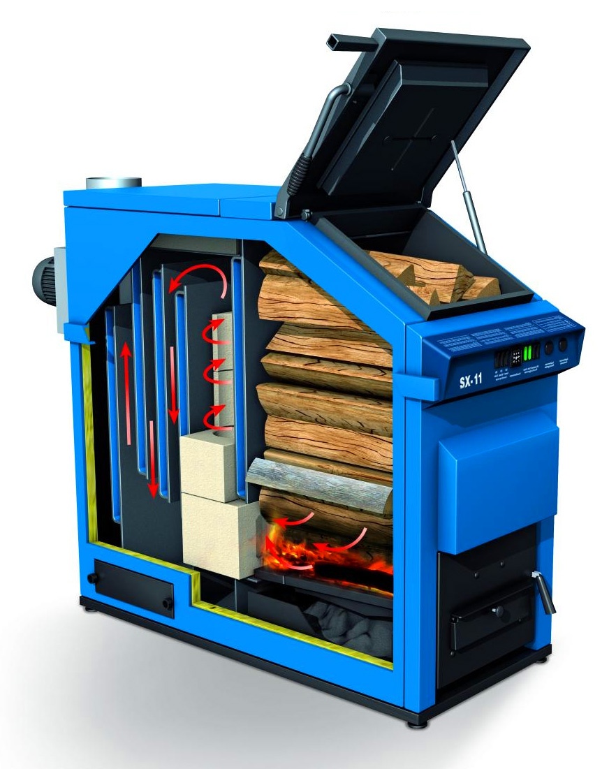 Прямое сгорание дров применяется во многих отопительных агрегатах: