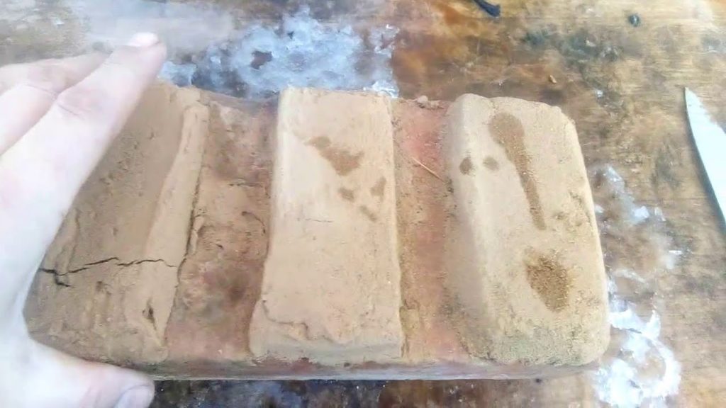 - Выложите на огнеупорный кирпич слой кладочного раствора толщиной около 5 мм. Через 10 минут рассмотрите результаты. Если трещин нет, добавьте больше глины. Если большие – песка. Оптимальный вариант – небольшие трещины по всей поверхности.
