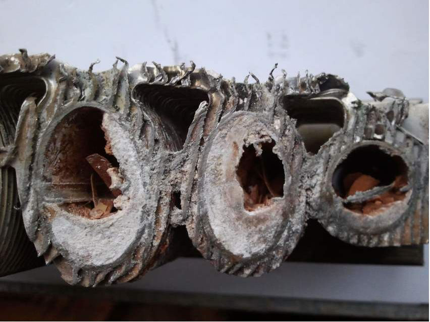 Такие отложения приводят к тому, что температура внутренних стенок теплообменника начинает увеличиваться, что также влияет на износостойкость и долговечность конструкции.