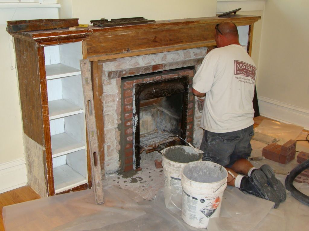 Подготовьте поверхность камина – очистите ее от пыли и закрепите арматурную сетку (ячейки 5х5 см).