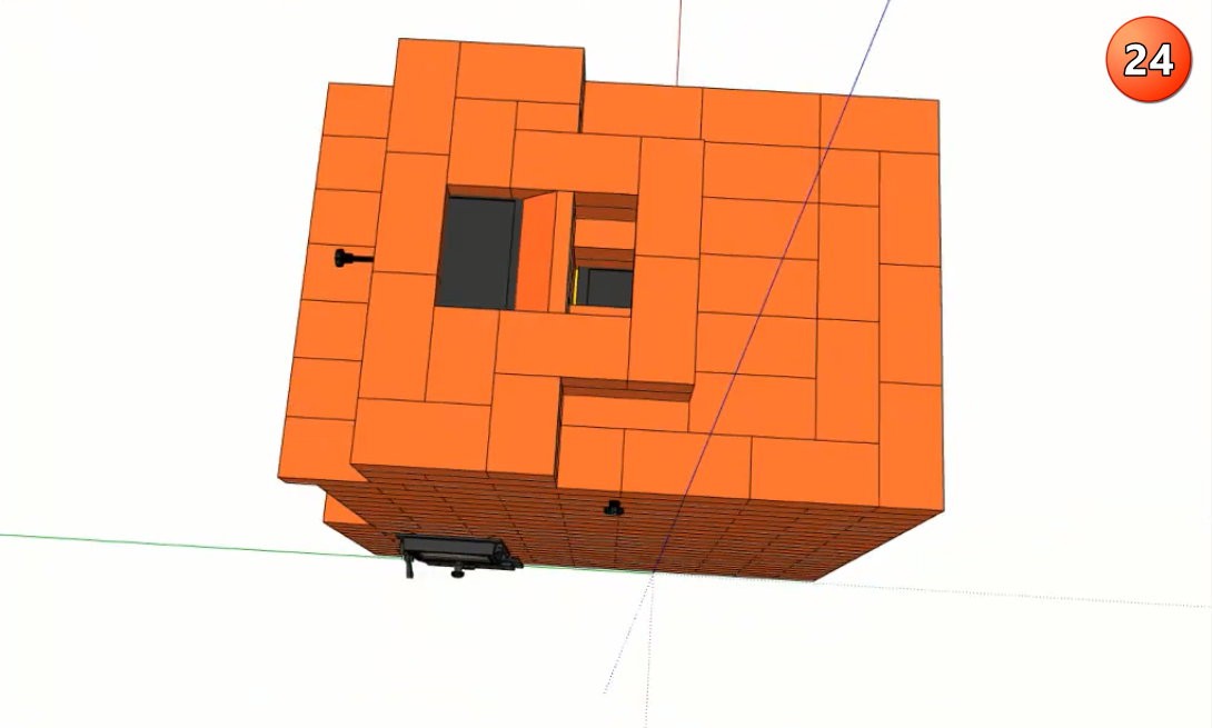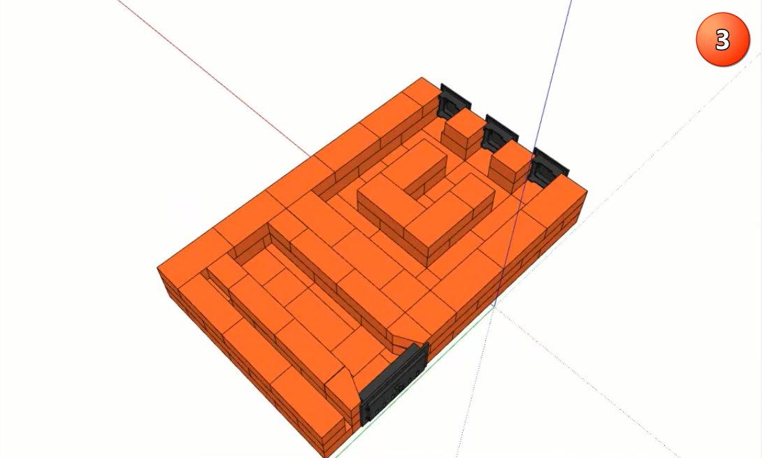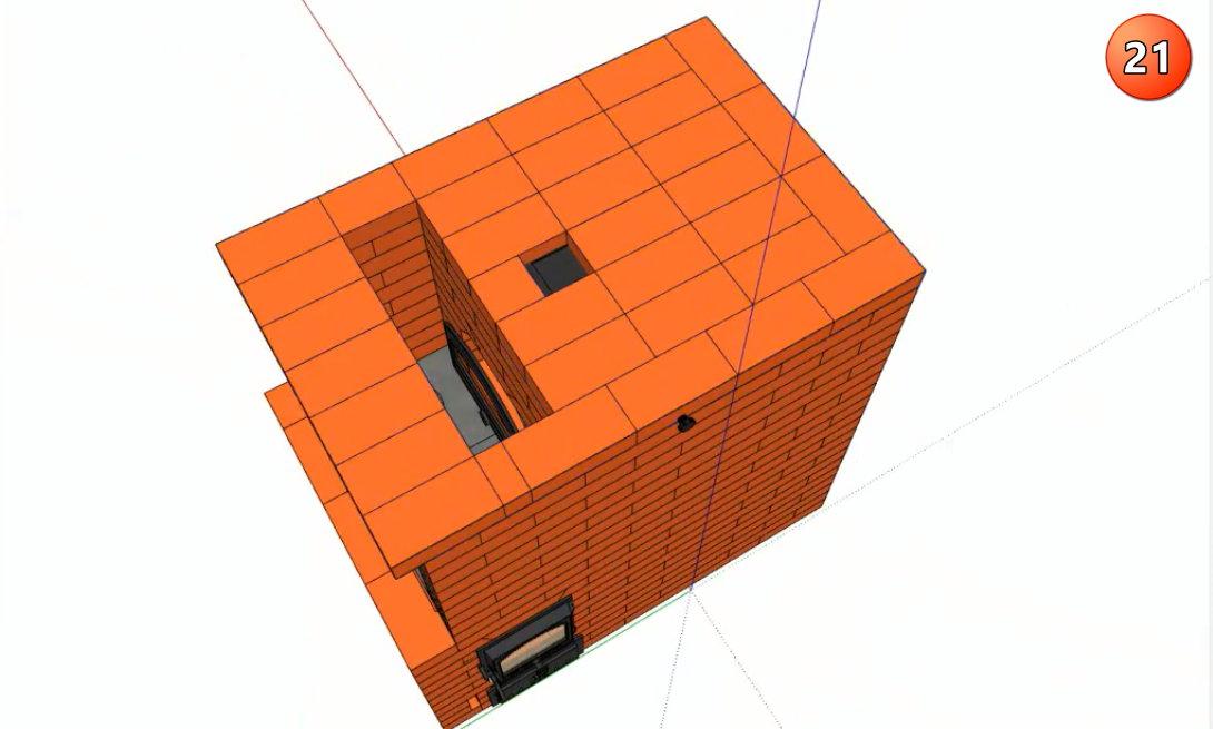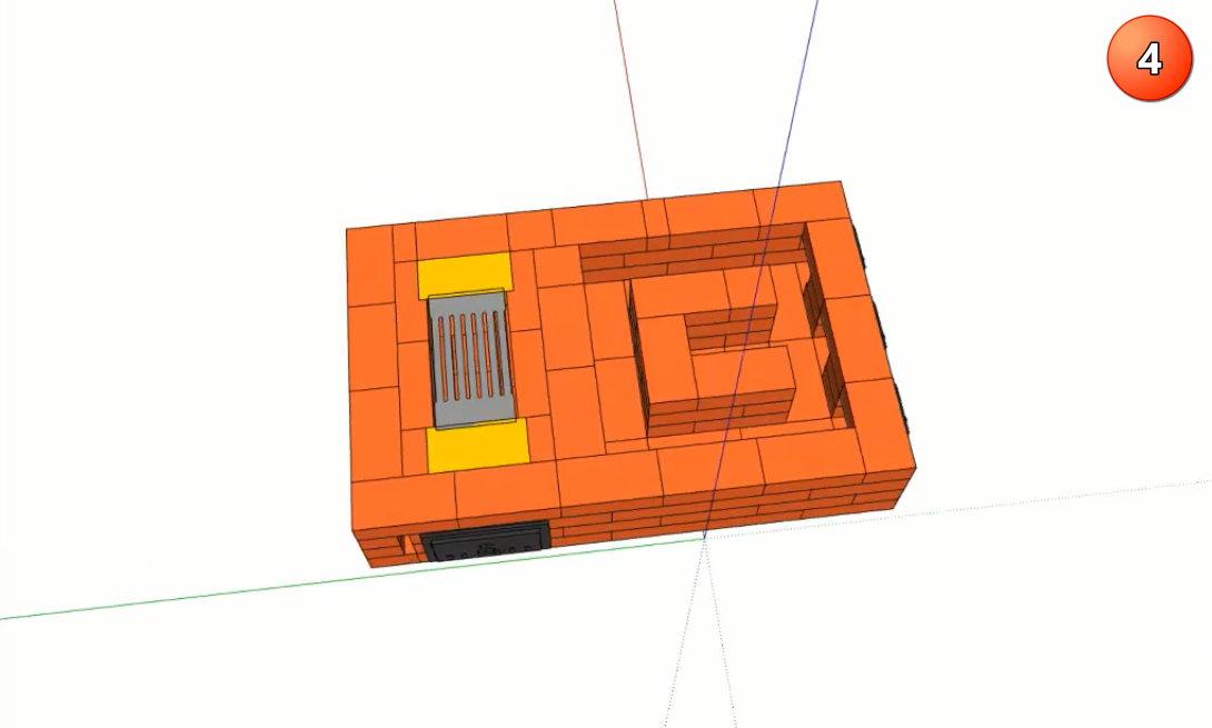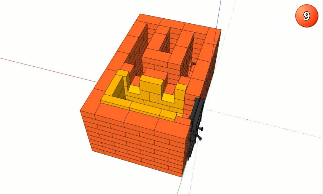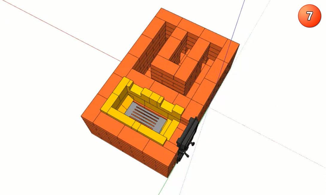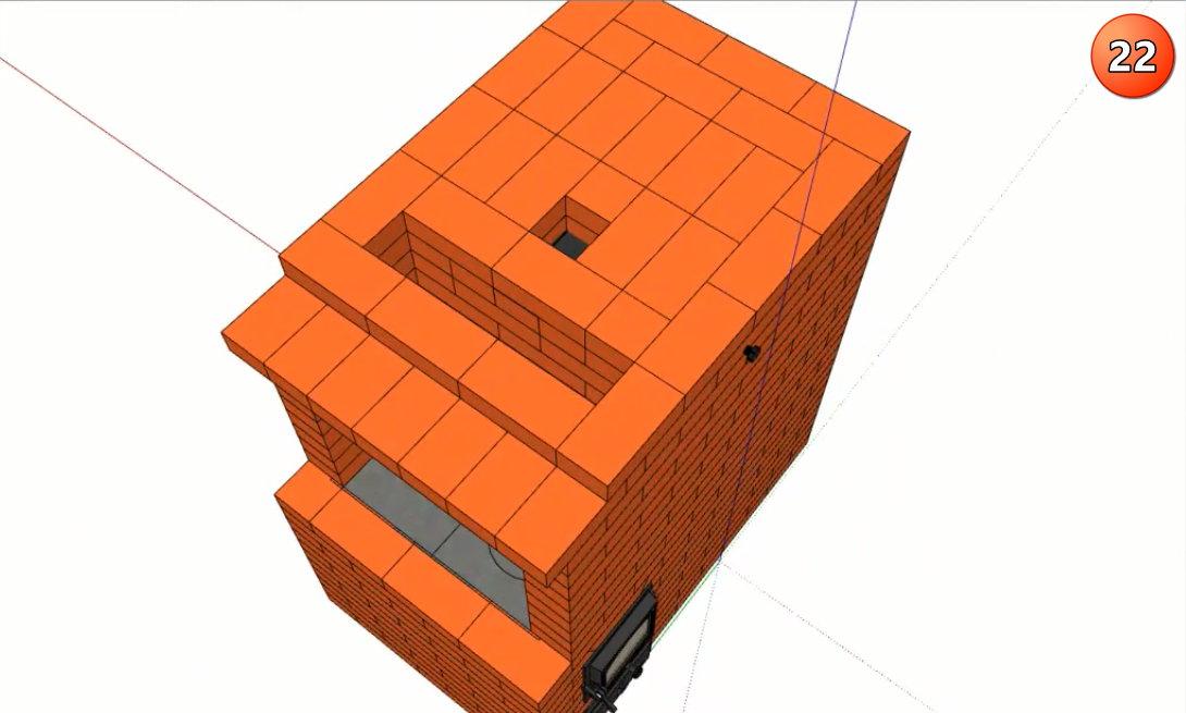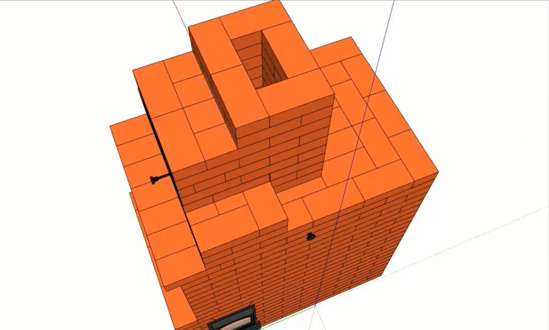 - Каждый второй ряд следует начинать с половины кирпича. Толщина задней стенки составляет 3 кирпича, боковых стенок — 2.