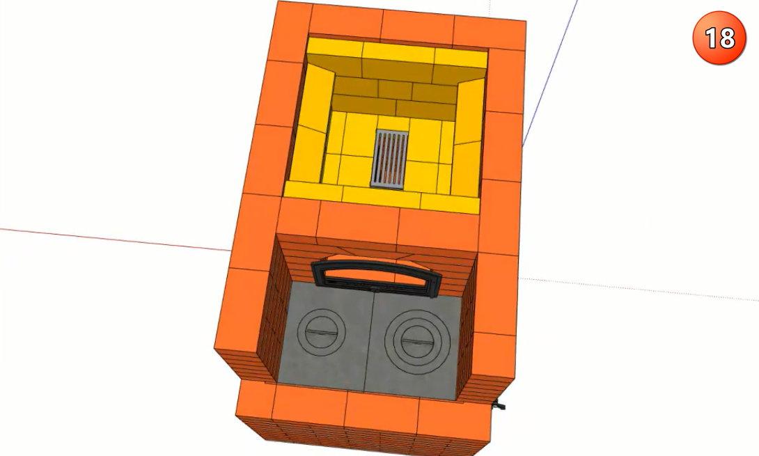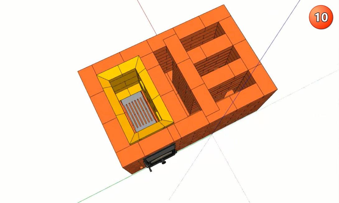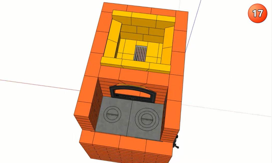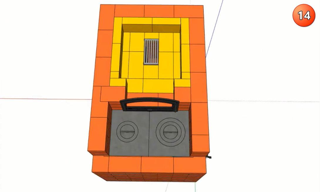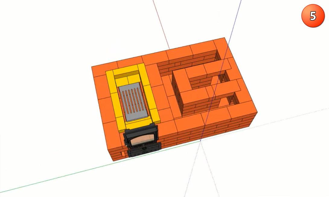 Перекроем каналы, чтобы дымовые газы попадали внутрь, грели боковые стенки и уходили в подвёртку.