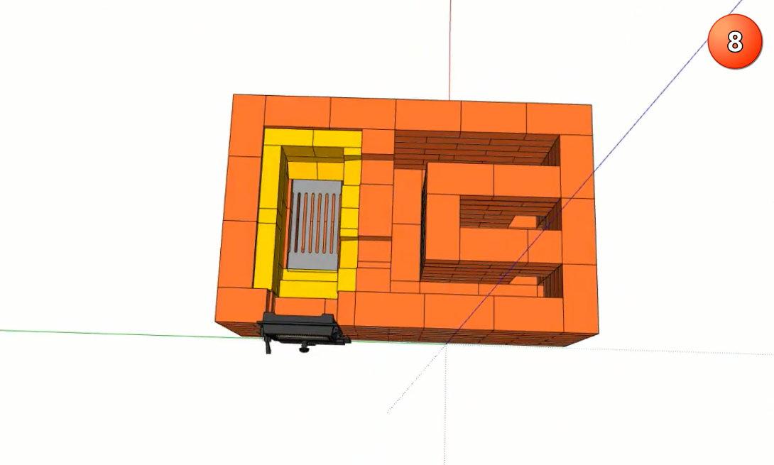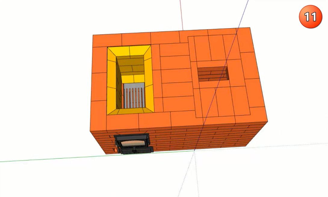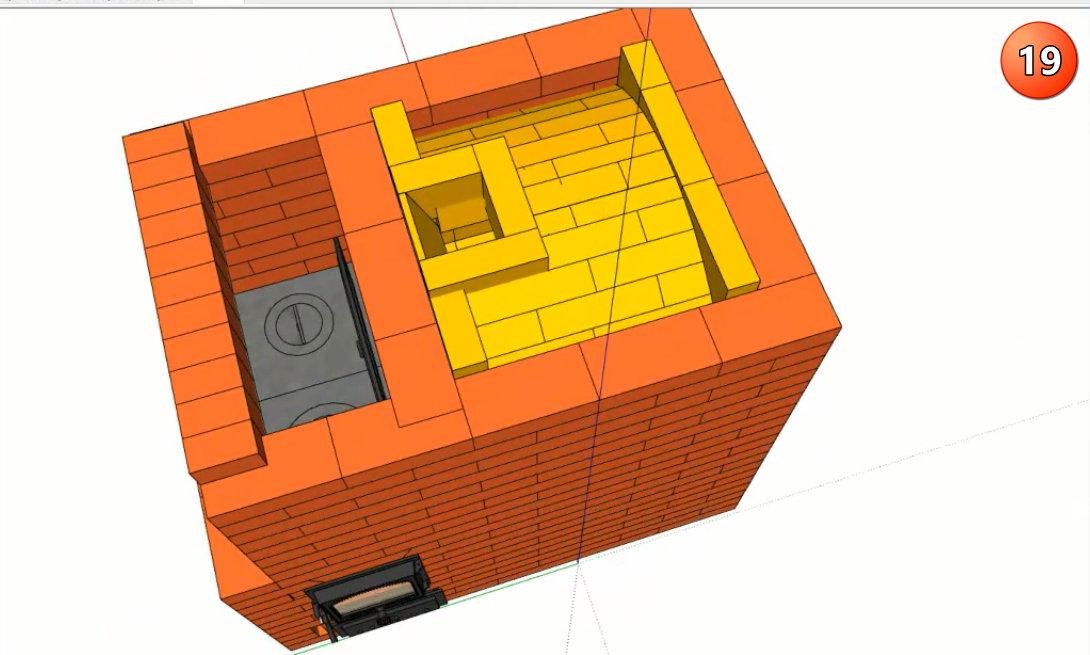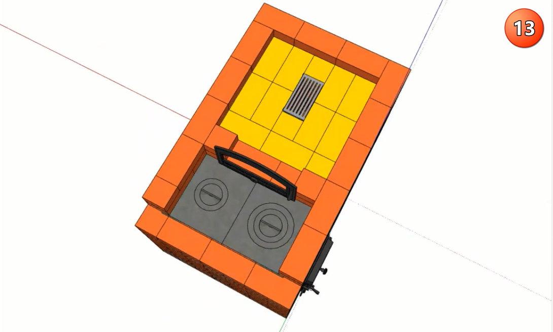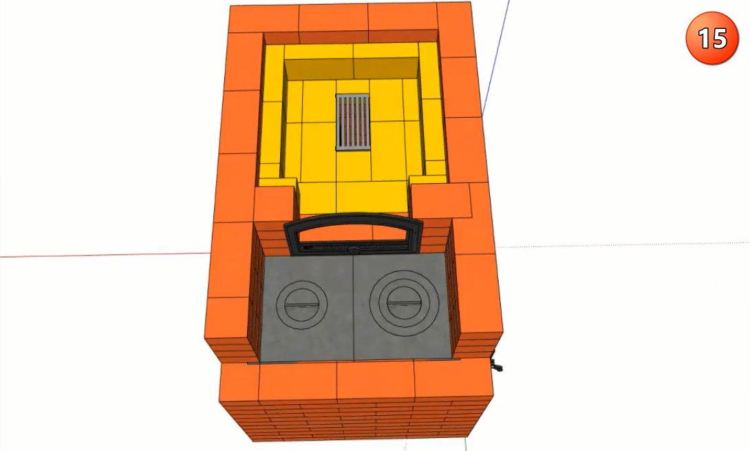 Перекроем каналы, чтобы дымовые газы попадали внутрь, грели боковые стенки и уходили в подвёртку.