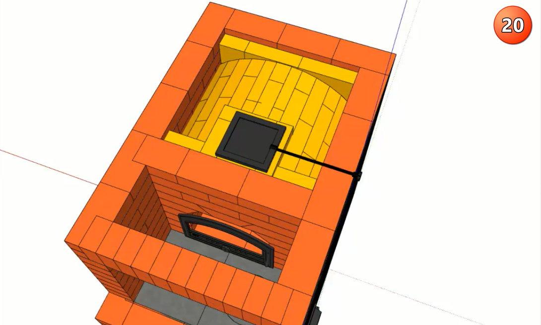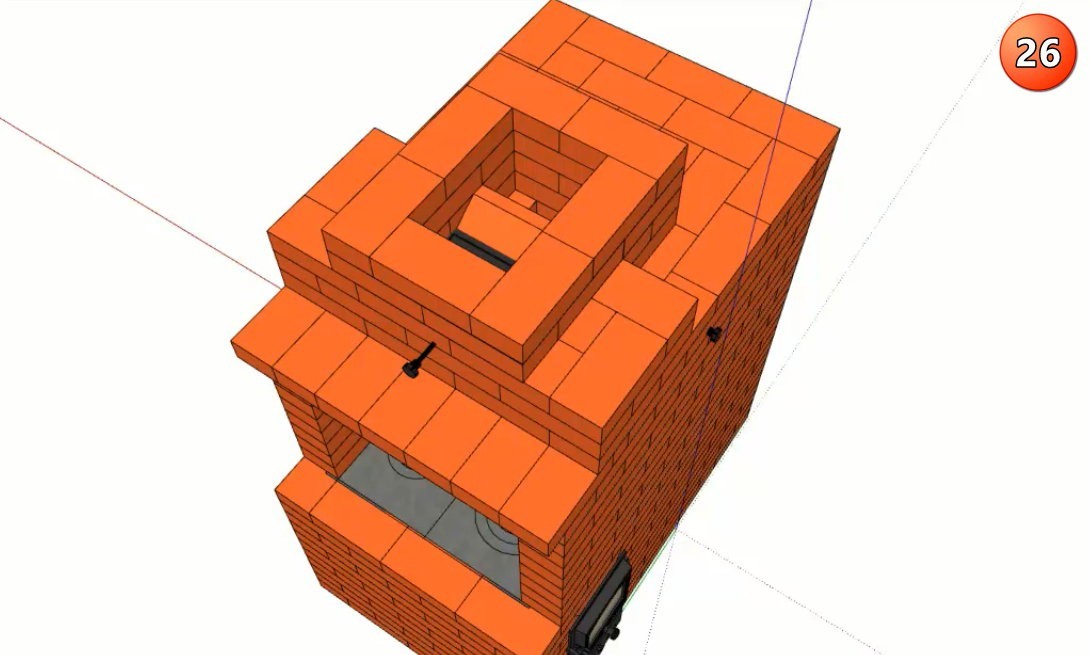 Фото 2. Порядовка кирпичной печи для беседки. Состоит из 26 этапов, при изготовлении используются два вида кирпича.