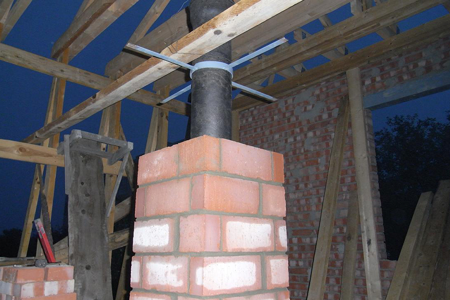 Проход кровли кирпичным дымоходом