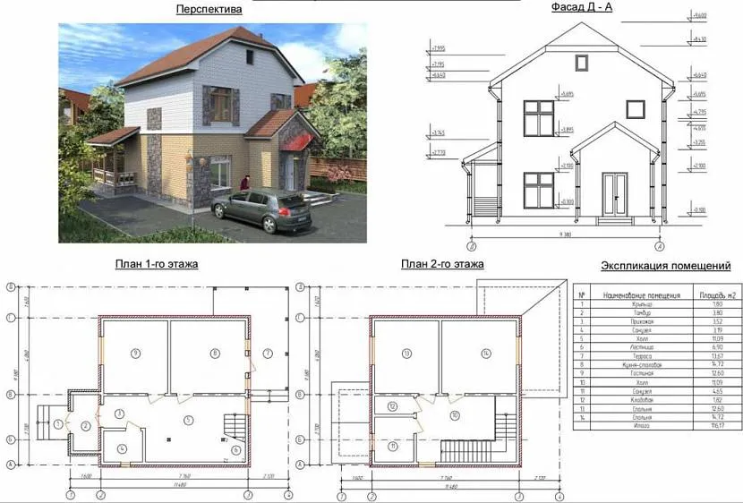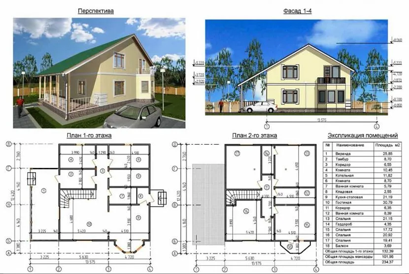 Уже на этапе составления эскиза нужно четко определиться с количеством этажей, типом кровли, внешним видом фасада и фронтальных частей дома, вплоть до количества окон, балконов, наличия террасы или мансарды. Эскизный проект также предполагает наброски вида здания в продольном и поперечном разрезах, где указываются особенности конструкции и материалы, из которых предполагается возводить дом.