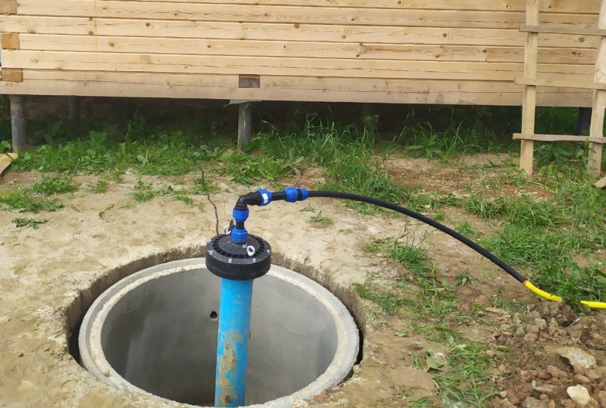 При нижнем водоснабжении вода поступает непосредственно из скважины или колодца. Напор создается постоянно работающим насосом. В целях экономии электроэнергии и ресурса прибора в точке входа также может устанавливаться специальный гидроаккумулятор.
