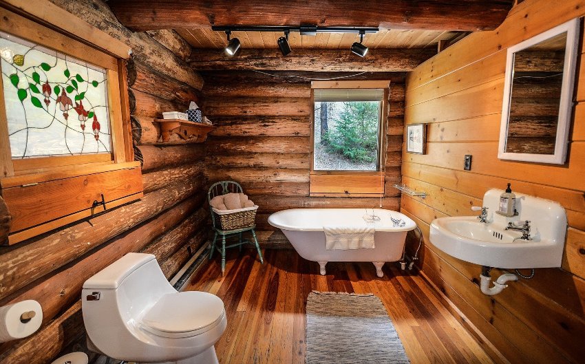 Для отделки санузла в деревянном доме можно использовать различные материалы. Так для обшивки стен применяется: