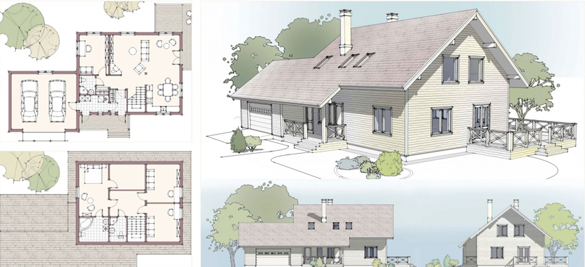 Определившись с месторасположением и предназначением будущего жилища, можно приступать к проектировке дома. С этой целью делают первоначальные наброски. При наличии элементарных художественных навыков хозяева смогут сделать это самостоятельно, даже без специальной компьютерной программы для постройки дома. На базе набросков составляется основной эскиз. В соответствии с ним подготавливают все остальные подробные чертежи и определяются с планировкой будущей постройки.