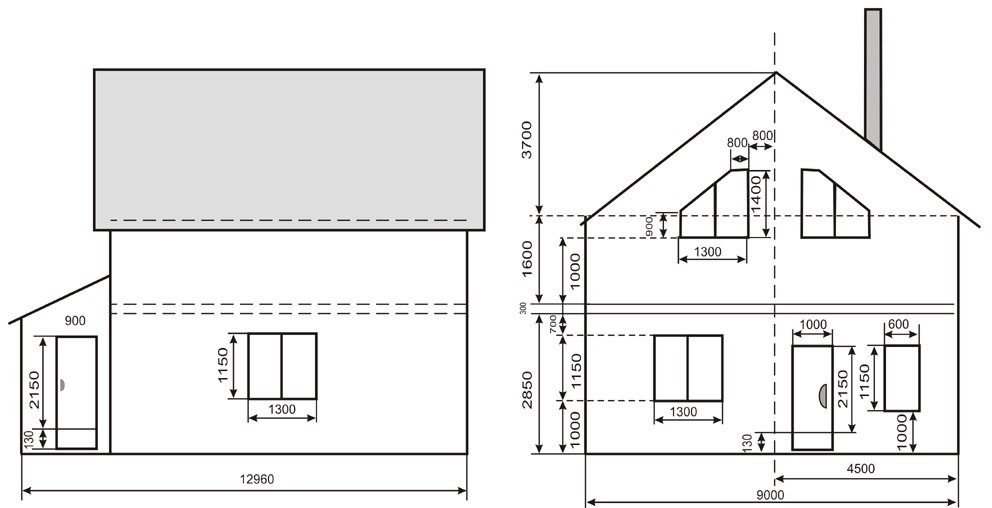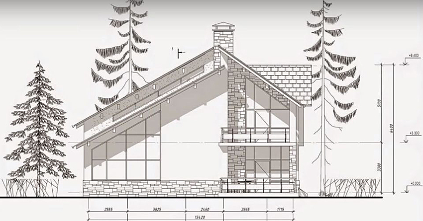 Чертеж фасада позволяет представить, как дом будет смотреться внешне, здание в разрезе показывает внутреннее устройство комнат.