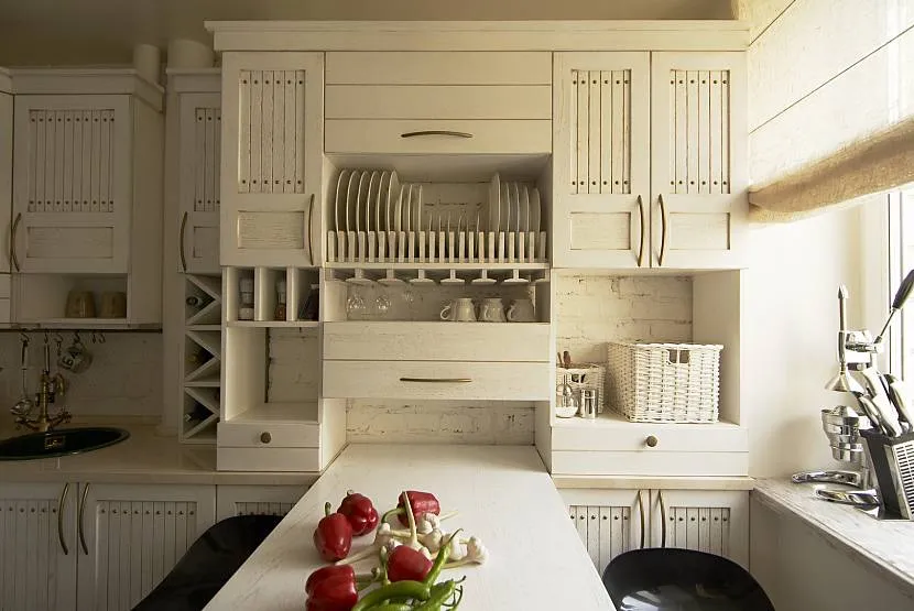 Рекомендуется использовать побольше эргономичных предметов интерьера, а также дополнительных устройств, помогающих сэкономить пространство и облегчающих жизнь хозяйки – это рейлинги, карусели для шкафов, выдвижные ящики.