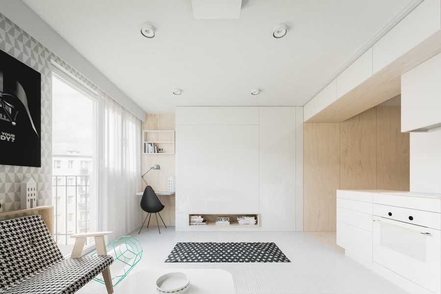 Например, иногда вместо дивана используют кресла груши, вместо рабочего стола – барную стойку, а некоторые дизайнеры умудряются даже кровать поместить в шкафу.