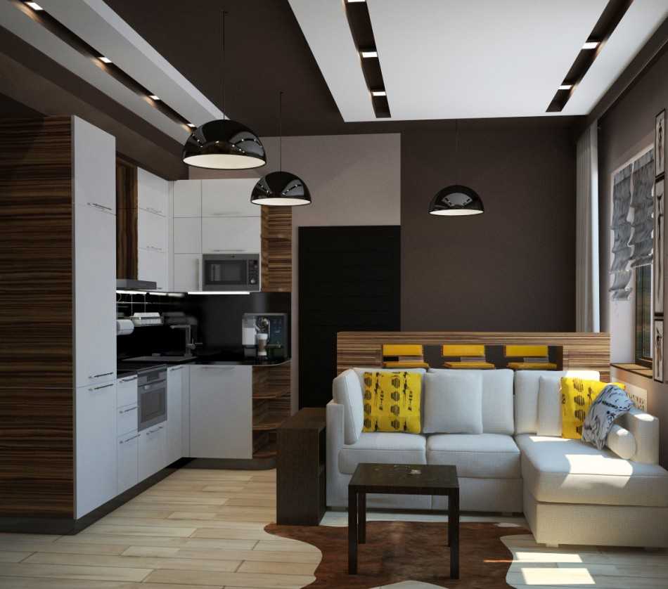 Сегодня очень популярен бежевый оттенок, который сделает интерьер студии или хрущевки изысканным и в то же время достаточно простым. Чтобы визуально увеличить пространство, можно остановить свой выбор на отделке в скандинавском стиле. Стоит отметить, что выбор точечного окружающего освещения также сделает пространство намного просторнее.