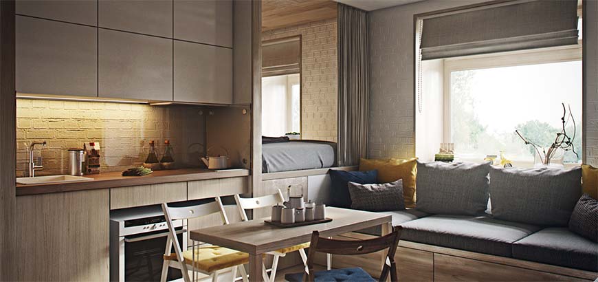 Так как все больше людей примыкают к удобству и культуре городской жизни неудивительно, что мы стали ценить дизайн, способный эффективно использовать пространство. Посмотрите на три миниатюрных интерьера от визуализатора Константина Энталецева. Каждый из них имеет размеры менее 40м2, но все еще позволяет включать в себя потрясающие элементы дизайна и прекрасные жилые помещения.