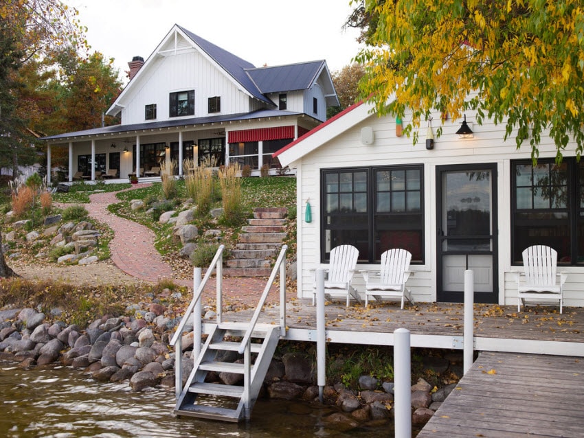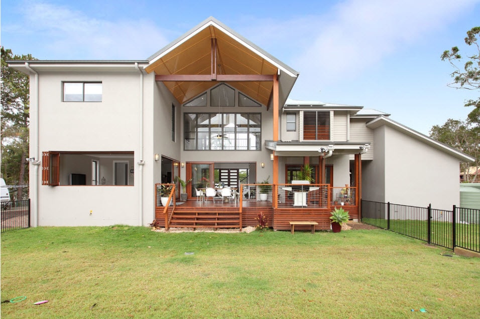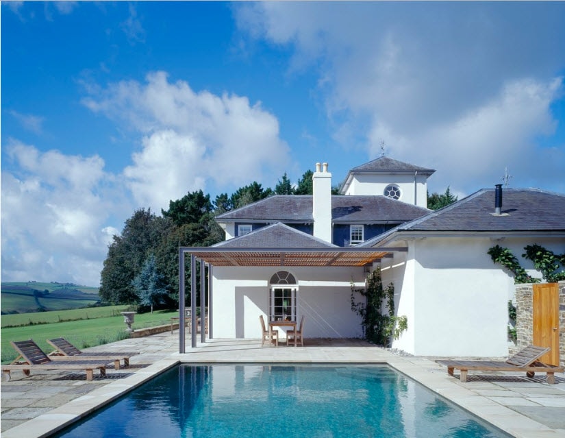 Выход лучше организовать из столовой или гостиной. Не стоит объединять террасу со спальнями. Открытая площадка располагается с противоположной стороны от основного входа. Владельцам маленьких участков нужно организовать живую изгородь или другое декорирование. Это поможет спрятать свою жизнь от посторонних глаз соседей.