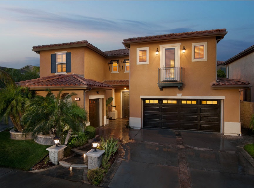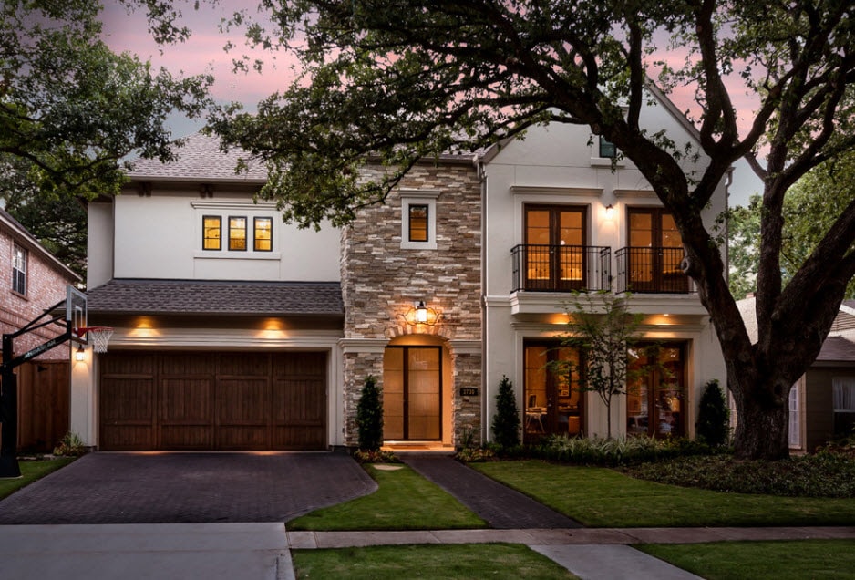 В большинстве случаев популярные архитекторы планируют балкон на переднем фасаде коттеджа, чтобы он занял центральное место на внешней стене дома и имел одну общую крышу. Для строений небольших площадей – это идеальный вариант.