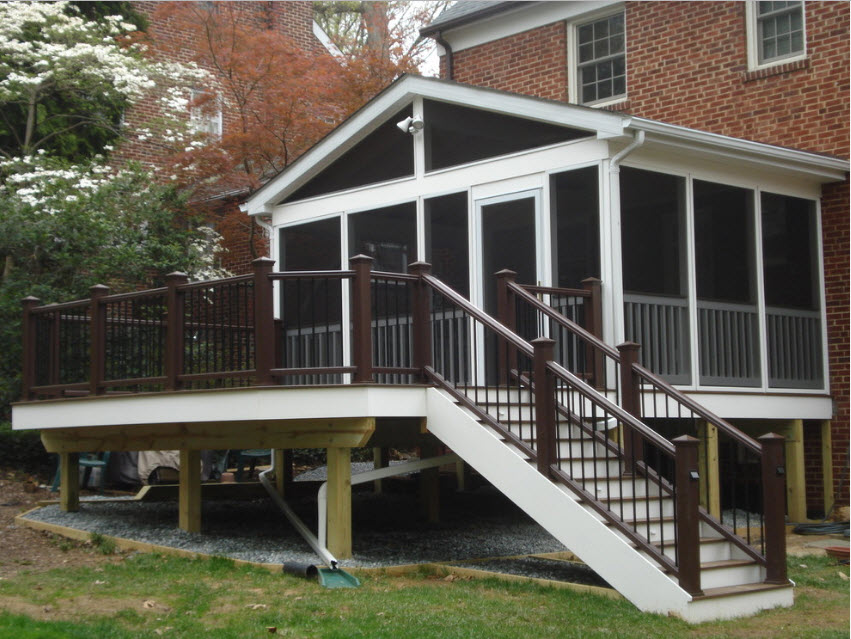 Если не выполнить это условие, даже открытая веранда начнет отходить: атмосферные осадки попадают под фундамент основного строения, зимой мороз делает свое дело: разрывает раствор, начинает ржаветь арматура. Со временем все строение может деформироваться.
