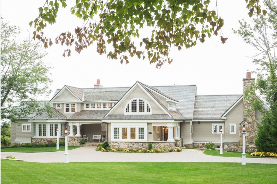 Одноэтажный дом с несколькими террасами. Оформление дома и пристроек выполнено из деревянного сайдинга