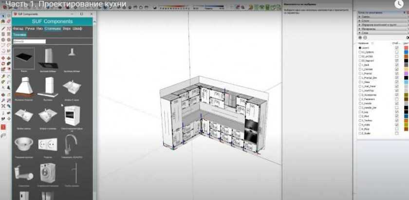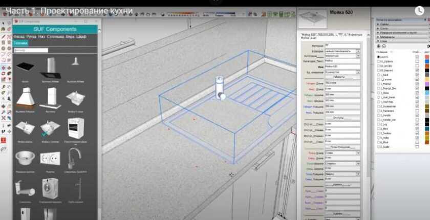 После запуска приложения откроется главное окно, в котором находятся основные инструменты для проектирования дизайна интерьера. В левой части интерфейса находятся трехмерные объекты, разделенные на категории. При создании дизайна кухни пользователям нужно перейти в раздел «Кухня».