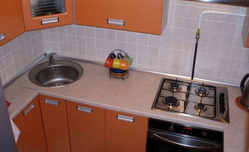 Угловая планировка позволит идеально соблюсти правило “рабочего треугольника”