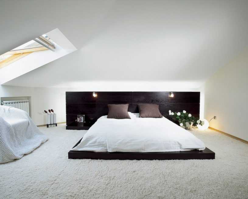 Кровать — основной элемент любой спальной комнаты. Спальное место без ножек будет наилучшим выбором для ограниченного пространства. Существует интересный прием установки кровати на специальный подиум, в котором можно спрятать множество ящиков и полочек для хранения мелочей. Такой прием делает спальню необычной, стильной и современной.