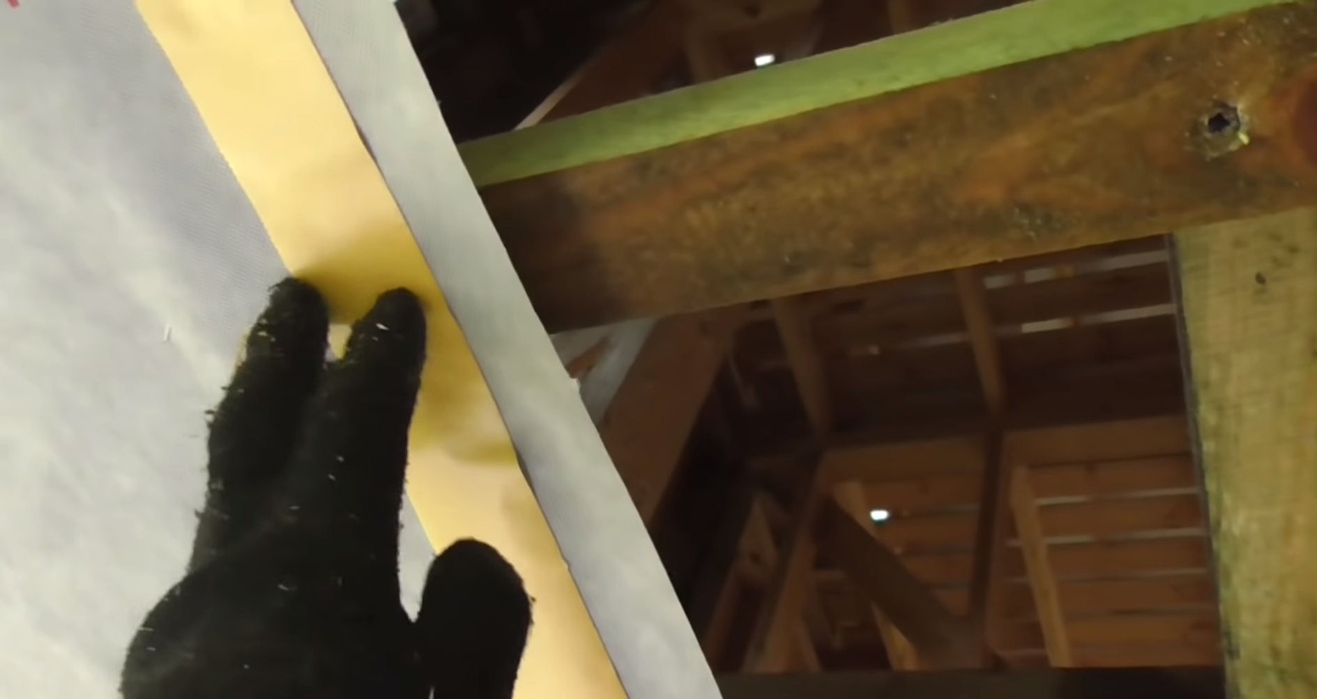 Сверху настилают слой пленки – пароизоляции, чтобы защитить теплоизоляцию от попадания пара, образования конденсата. Настил осуществляется также внахлест, стыки соединяют строительным степлером.
