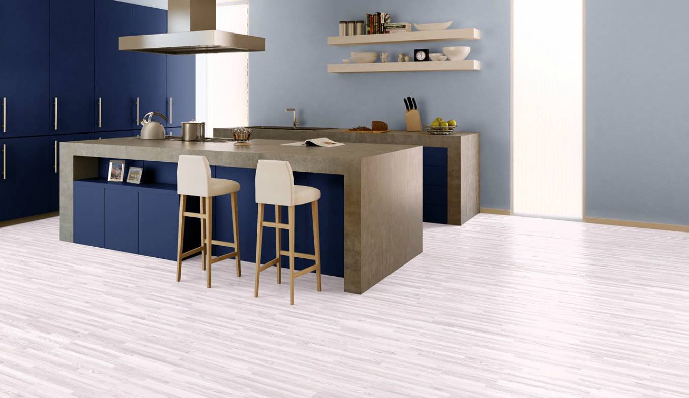 - Кухня. Является сложным пространством с точки зрения выбора класса износостойкости материала. Внешний вид подбирайте под общий дизайн. На кухне высокая влажность, есть вероятность попадания жирных капель на пол. Поэтому отлично подойдет материал, обладающий высокой степенью устойчивости к негативному влиянию перечисленных факторов.