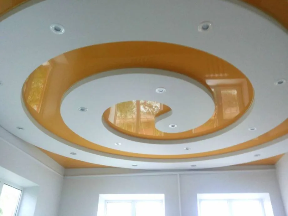 Материал, который используется для данного вида отделки, бывает двух основных видов: ПВХ пленка и тканевое полотно. В свою очередь ПВХ пленка представлена в виде матовой, сатиновой и глянцевой фактуры. Это полностью синтетический, эластичный, хорошо тянущийся материал, созданный на основе винила. Потолочными полотнами из виниловой пленки можно отделать потолки различных конфигураций.