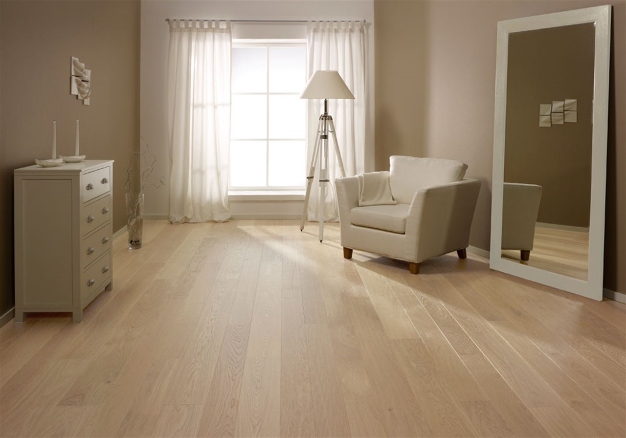 Белоснежный цвет. Такое покрытие постоянно в тренде, из-за того, что оно просто комбинируется с разными стилистическими направлениями в интерьере. Белоснежный пол зрительно наращивает место, на его поверхности не сильно видна пыль и маленькие царапинки. Перед тем, как затонировать паркет в белоснежный цвет, его необходимо аккуратно приготовить и снять прошедший слой ЛКМ.