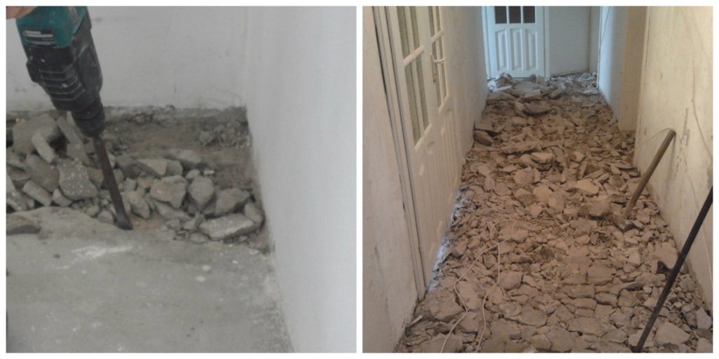 Демонтаж, в процессе которого удаляется раствор из бетона и цемента, независимо от способа, которым делается, заключается в разбивании пола на куски.